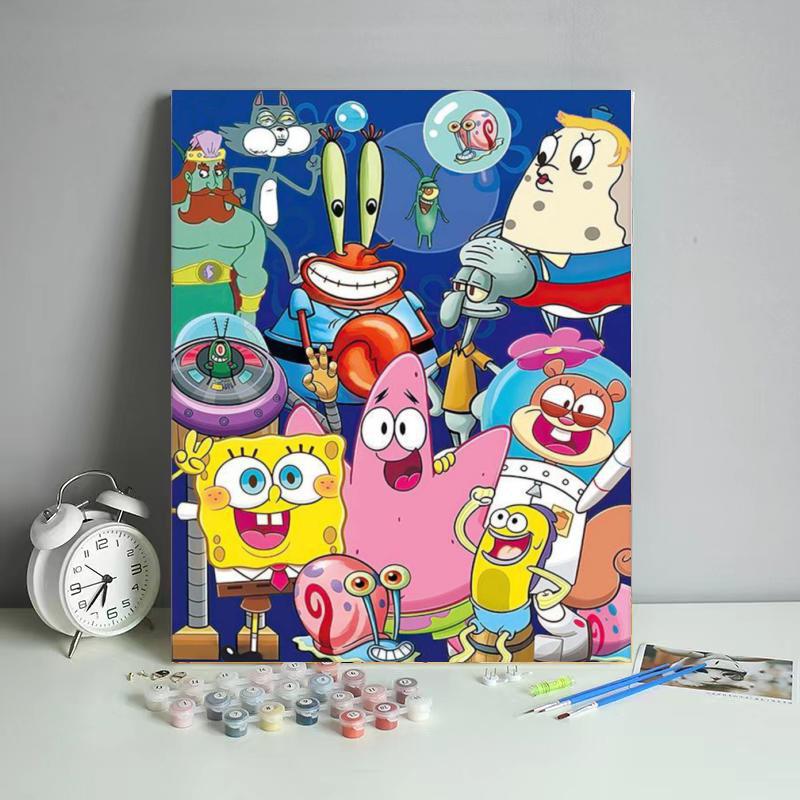 Collection:Spongbob anime DIY digital oil painting with frame(boxed)40*50cm